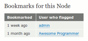 Bookmarks Views are set to show only flags (Bookmarks) for the currently logged in user.