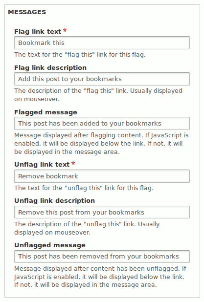 This Relationship also allows to show some useful information about the flags in question, like when they were bookmarked, and it provides the links to add or remove the Bookmark.