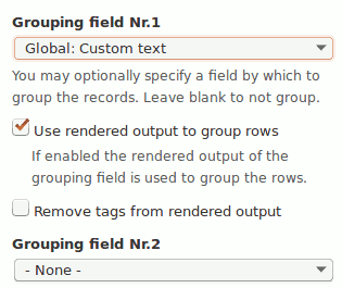 Views Format options allow for more than one field to be used in the Grouping options. Once there is one field chosen as the Grouping field, a new option appears where we can choose a second field to be used in the grouping, and so on with the third, etc.