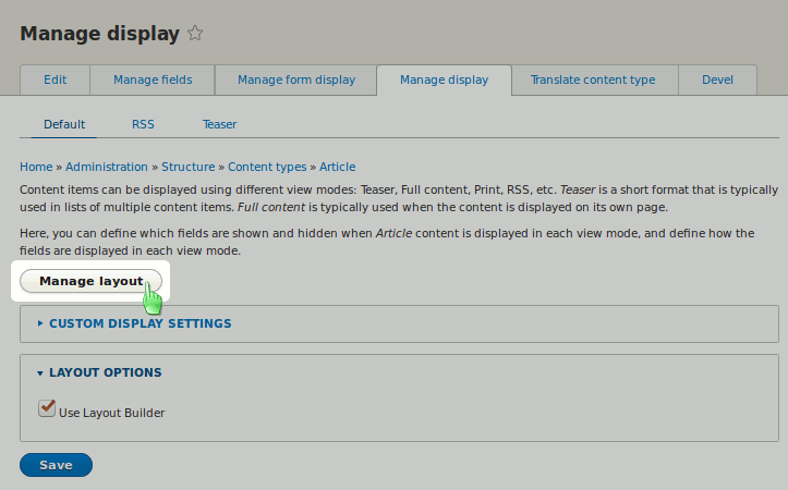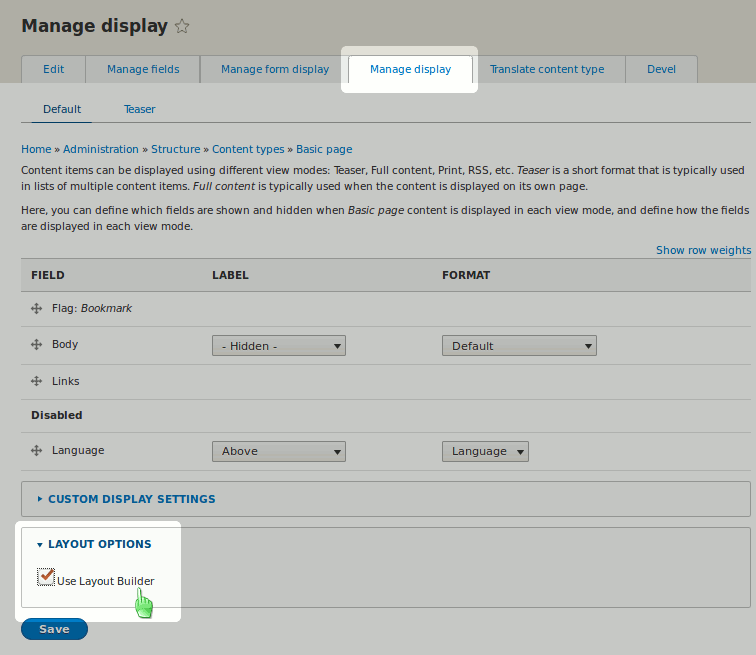 Back to topEnable Layout Builder on Manage display page