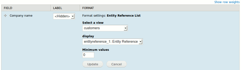 Choose Views display to format Entity reference field display